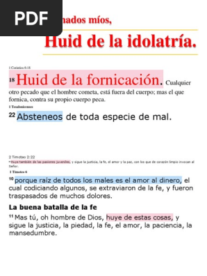 Huid de la fornicación. Web Cualquier otro pecado que el hombre hiciere fuera del cuerpo está. Web Corintios 618 Huid la fornicación.